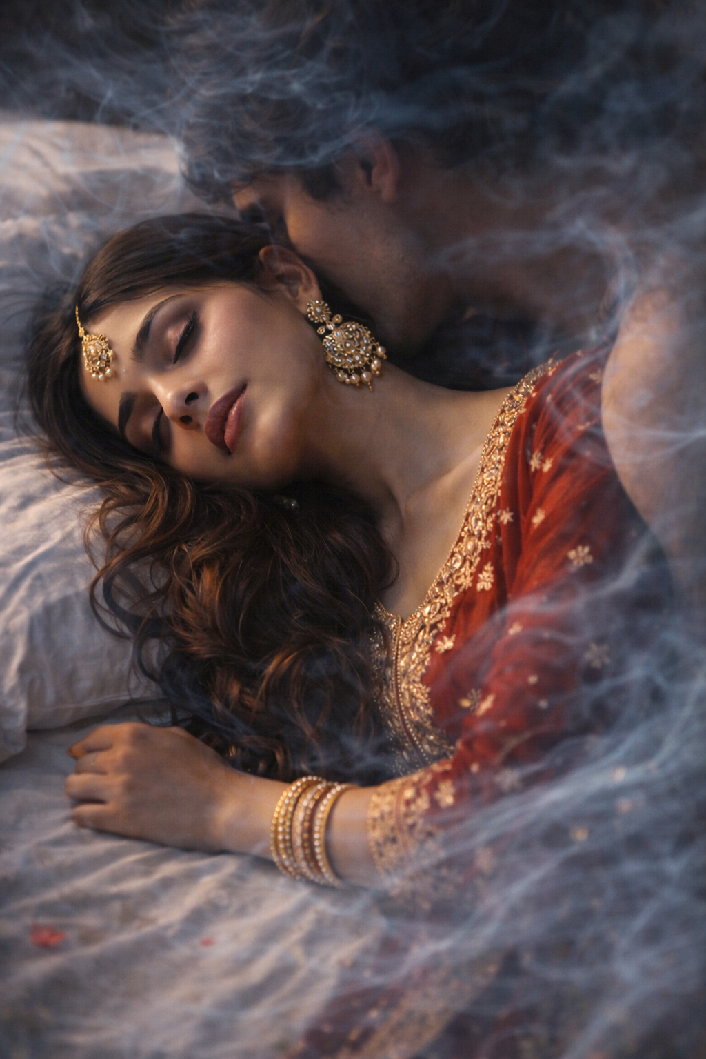 अप्सरा ने कांपते हाथों से उस टूटे हुए लॉकेट को अपने सिरहाने (Bedside table) पर रख दिया। उसकी आँखों की पलकें आँसुओं से भारी थीं, पर जैसे ही उसने बिस्तर पर सिर रखा, उसे महसूस हुआ कि कमरे की दीवारें धुंधली हो रही हैं।