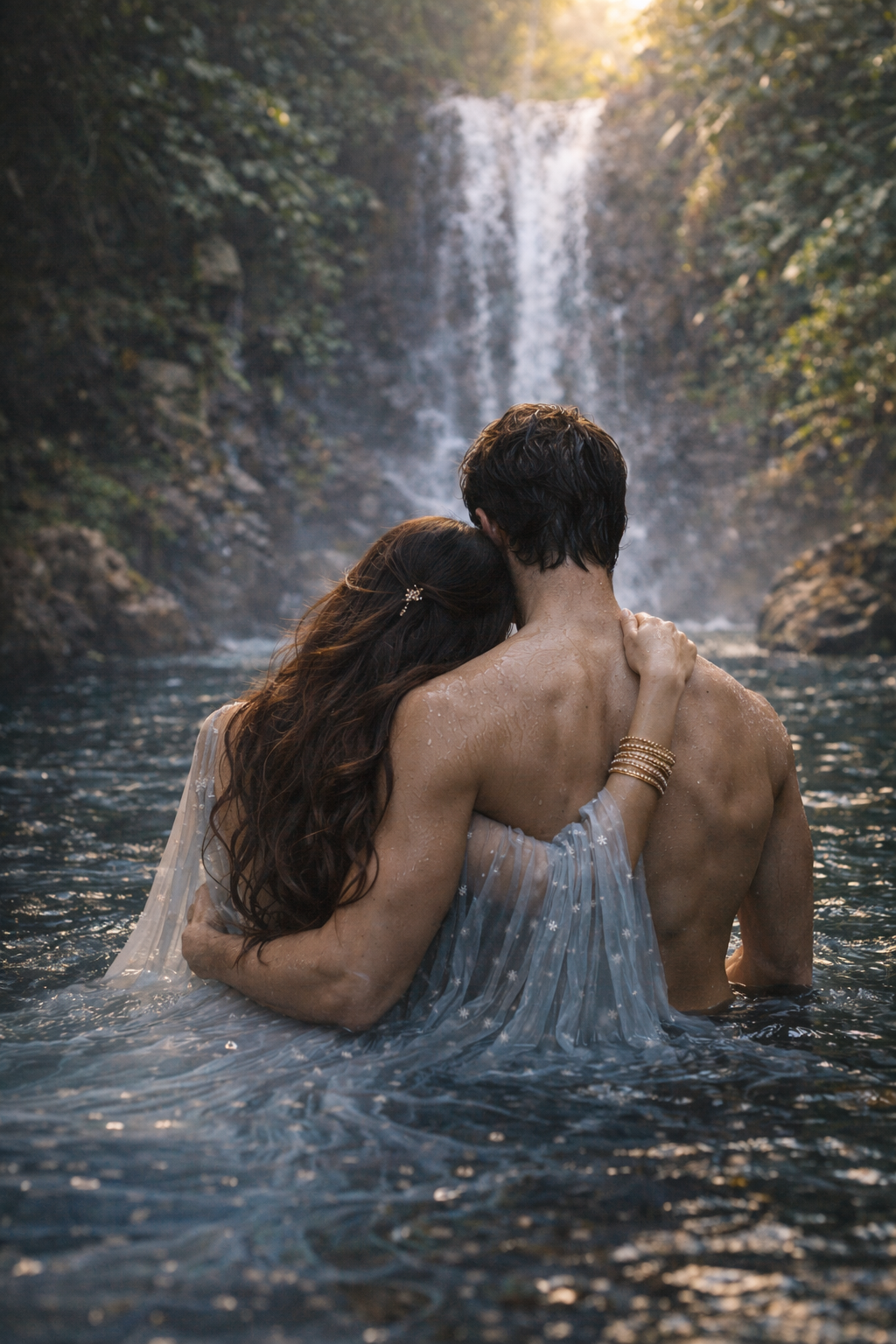 अप्सरा के ठीक पीछे, अंधेरे से एक विशाल परछाईं निकली। उसने देखा कि आईने में उसके कंधों पर दो बड़े, मज़बूत हाथ रखे हुए हैं। वह मुड़ी, पर पीछे कोई नहीं था। लेकिन आईने में... आईने में वह साया उसे अपनी बाहों में भरे हुए था।