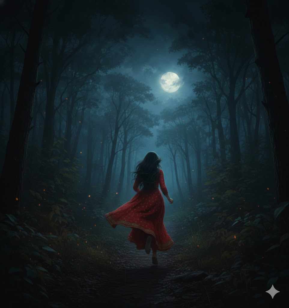 चार लोगों की परछाइयाँ चुपचाप पेड़ों के बीच सरक रही थीं —